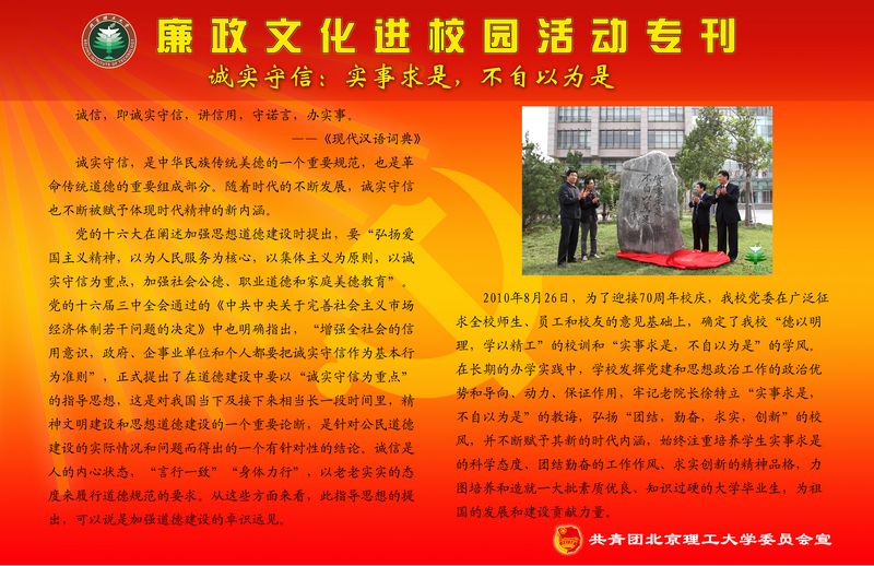 “遵纪守法、诚实守信”廉政文化进校园主题宣传专刊