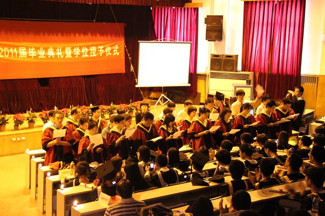 6月21日,材料学院2011届毕业典礼暨学位授予仪式在七号楼报告厅隆重举行,材料学院院领导、各系教师出席了典礼,同所有毕业生以及远道而来的家长们一起共同见证这个收获的激动的时刻。毕业典礼由07级本科毕业生李巍巍主持,由于学院博士毕业生中有一位留学生,所以还特邀了07级本科毕业生武金丹担任英语主持人。
