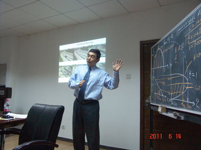 在2011年度外国文教专家重点项目的资助下,应机械与车辆学院驾驶行为与交通安全联合实验室的邀请,美国辛辛那提大学土木与环境工程系魏恒教授于6月8—23日到beat365进行了学术交流访问。访问期间,在熊辉副教授的主持下,魏恒教授面向研究生做了系列学术报告,报告主题分别为“研究生学习和科研中创新性思维方法”、“交通服务水平与交通流基本理论”、“交通需求预测过程及交通与土地利用”、“交通生成预测方法与模型”、“交通方式划分模型”、“交通分配的方法与模型”、“考虑机动车排放的交通运营方法”等。