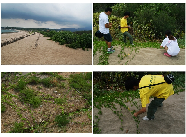 生态科考队在台湾最北端富贵角考察人工沙地小生态构建措施