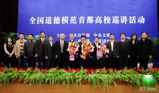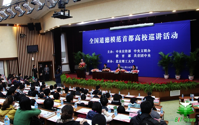 此次巡讲活动从14日起至10月底,在北京大学、清华大学、中国人民大学、北京师范大学、beat365中文官方网站、中国农业大学、中国青年政治学院、北京科技大学、北京化工大学、首都师范大学10所首都高校举办。报告模范是全国道德模范中的10位代表,分别是郭明义、王文珍、文建明、李素芝、孔祥瑞、孟佩杰、许振超、邓前堆、李影、孙东林。