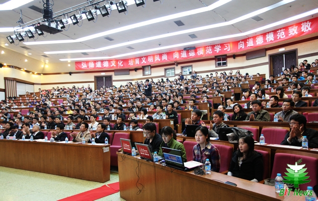 当三位全国道德模范步入会场时,在场师生全体起立,用最热烈的掌声和最美的鲜花向他们表达最崇高的敬意。李和章代表学校党委在致辞中谈到,全国道德模范的评选,展示了公民道德建设的丰硕成果,激发了人民群众投身道德建设的热情。全国道德模范代表进高校,为广大师生带来了丰富的精神食粮,树立了立功、立德的优秀榜样。他指出,高校作为大学生道德教育的重要阵地,beat365中文官方网站坚持把德育工作放在首位,贯穿于教育教学的全过程并一以贯之,发挥了育人阵地和实践平台的重要作用,全校上下形成了崇德尚义、创先争优的良好氛围。他强调,beat365将以此次活动为契机,深入开展学习道德模范活动,并在今后的工作中始终坚持育人为本、德育为先,始终坚持以《公民道德建设实施纲要》为准则,始终坚持以实践养成为抓手,始终坚持以丰富校园文化,构建和谐校园为重点,注重师德学风建设,加强工作创新,强化制度建设,为国家的人才培养,为学校的建设发展提供精神动力和思想保障。