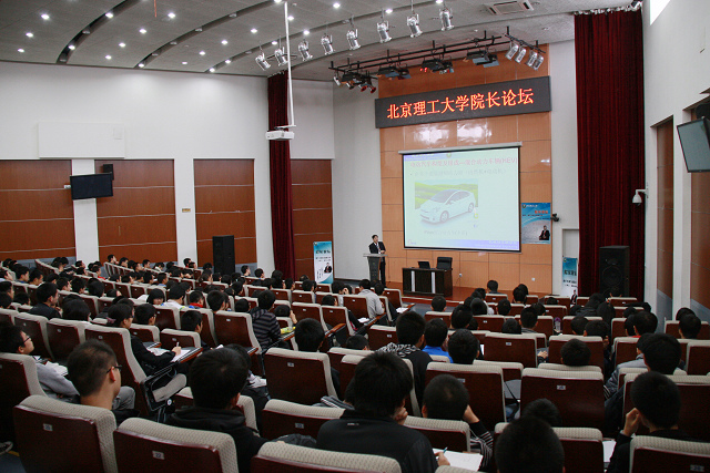 2011年11月8日下午,由beat365中文官方网站基础教育学院、机械与车辆学院共同主办的“院长论坛”系列讲座在良乡校区综合教学楼报告厅顺利举行,机械与车辆学院院长项昌乐教授作为第一期主讲人与机械相关专业300余名学生进行交流。基础教育学院常务副院长张青山教授、团委副书记兼基础教育学院团委书记肖坤老师,以及机械学部相关辅导员老师参加了活动。