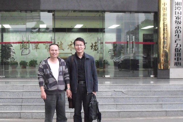 拜访湘潭市科技局副局长肖加其校友(左)