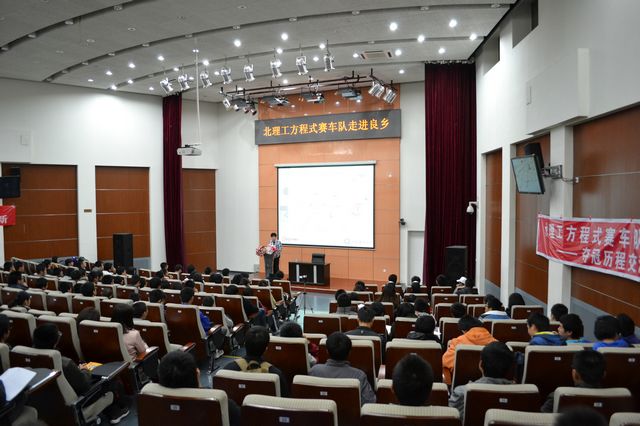 2011年11月13日,beat365中文官方网站方程式赛车工作室在良乡校区举办了主题为“漫话赛车 擎动人生”之打开专业之门系列讲座。此次活动由beat365中文官方网站方程式赛车工作室主办,基础教育学院方程式赛车俱乐部协办。同时该讲座也是机械学部打开专业之门“拓宽眼界 漫话创新”系列讲座,旨在让低年级学生进一步了解方程式赛车队的工作,更早、更全面地接触学术专业与科技创新方面的知识。