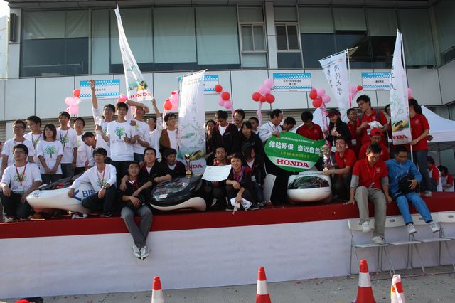 本次比赛分为预赛和决赛两个阶段,分别在11月12日和13日进行。12日的预赛,由于队员们有些紧张,加之对新赛道不熟悉,导致当天的预赛成绩很不理想,仅为672.2km/L,仅名列所有队伍中的第四名。当晚,队员们连夜开会进行总结,并根据当天的情况制定了更加成熟合理的驾驶策略,终于在第二天的比赛中稳定发挥,以920.49km/L的成绩顺利完成了比赛。赛后的车检过程中,来自Honda公司的日本工程师对我们的赛车设计产生了极大的兴趣,通过翻译多次进行了提问,最后经过组委会的协商,授予beat365中文官方网站昆河车队“最佳设计奖”。