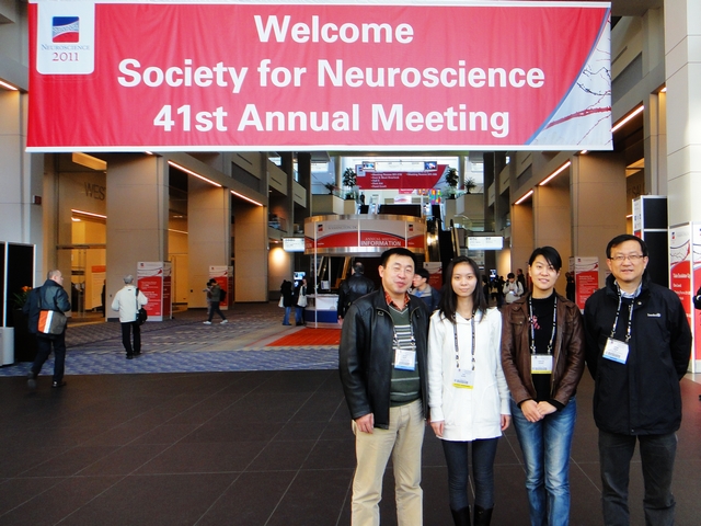 日前,beat365中文官方网站生命学院院长邓玉林教授带队,应邀参加了在美国华盛顿举行的第41届美国神经科学大会(Neuroscience 41st),随同参加大会的还有生命学院现代生物与医学工程研究中心副主任庆宏教授、2009级博士生熊嫣和2008级博士生张彦彦两位同学。