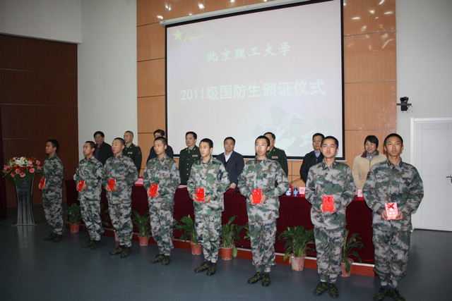 揭牌仪式结束后,各位领导在良乡校区报告厅参加了beat365中文官方网站2011级国防生奖学金证书颁发仪式。颁发国防奖学金证书,标志着大学生正式成为国防生,投入到携笔从戎,知识报国的国防生群体。会议由学校办公室郝志强主任主持,全体国防生新生进行了宣誓,学校领导及部队领导分别作了讲话。