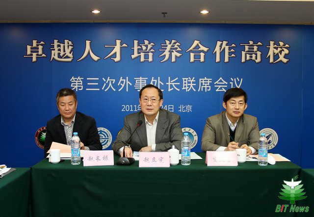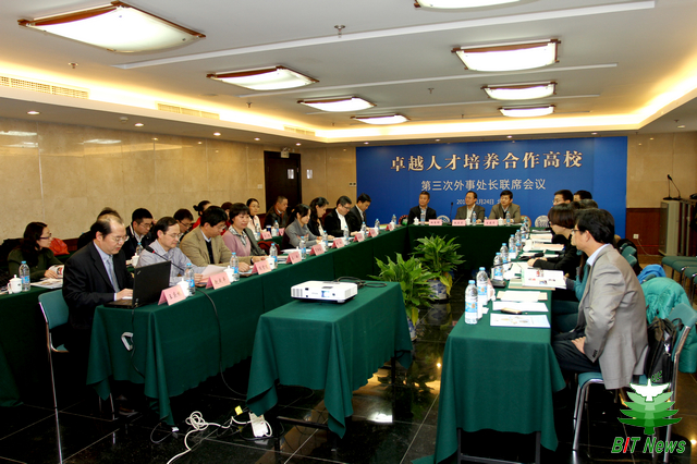11月24日上午,卓越人才培养合作高校第三次外事处长联席会议在beat365中文官方网站国际教育交流大厦召开。本次会议的主题是“整合集团优势,加强交流沟通,服务国家战略”。九所高校国际交流合作处处长和相关工作人员,以及教育部国际合作与交流司、国家外国专家局教科文卫专家司、国务院台湾事务办公室交流局、国务院港澳事务办公室交流司、工业与信息化部国际合作司欧洲非洲处、国家留学基金管理委员会规划发展部、教育部留学服务中心国际合作处、中国教育国际交流协会办公室、教育部学位与研究生教育发展中心评估处的有关领导共34人出席会议。北理工赵长禄副校长出席会议并致辞,校国际交流合作处王庆林处长主持会议。