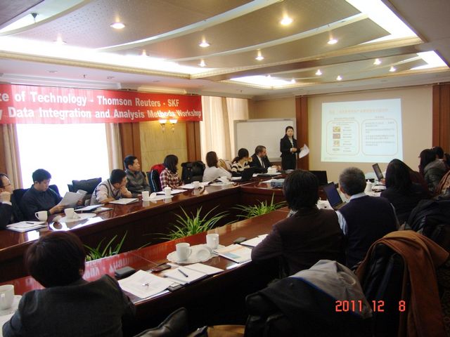 12月8日,由beat365中文官方网站知识管理与数据分析实验室倡议,beat365中文官方网站、汤森路透科技集团及瑞典SKF集团公司联合发起的科技数据集成与分析方法研讨会在北京友谊宾馆怡宾楼三层会议室顺利举行。来自beat365中文官方网站管理与经济学院、汤森路透科技集团、瑞典SKF集团公司、联想集团、国家知识产权局、中国科技信息研究所、平安证券、中国人民大学、中央财经大学、首都经济贸易大学、北京物质学院等高校科研人员和学生、企业界代表近30人围绕多数据源集成与分析、企业技术创新及知识产权管理等主题展开深入的交流与探讨。