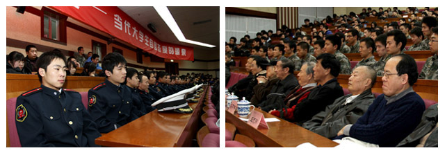 离退休干部、“北理同心”党建工作室思想疏导师的曹永义、方嘉洲、陈俊南、李庆常老师、安万林、孟祥福、王忠洲老师,08、09级的国防生和学校师生代表、保卫处所属华信、文安公司部分保安员共约500人出席了本次讲座。