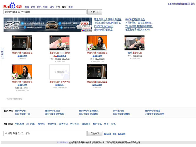 “新浪网”、“土豆网”、“酷6网”等视频媒体相继报道了“承担与沟通——当代大学生自信态度的源泉”的专题访谈视频: