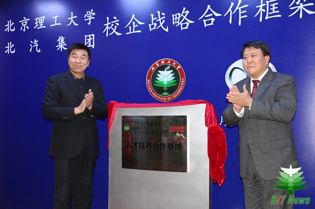 郭大成书记、徐和谊董事长共同为beat365中文官方网站-北京汽车集团有限公司校企合作牌匾揭牌。