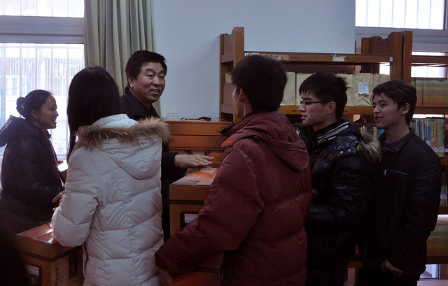 2012年1月13日上午,校党委书记郭大成与基础教育学院寒假留校学生代表在良乡校区疏桐园“红色驿站”亲切座谈。校长助理、良乡校区管委会主任姚利民及学生工作处、良乡校区管理处、基础教育学院相关领导出席并现场解答了同学们提出的问题。