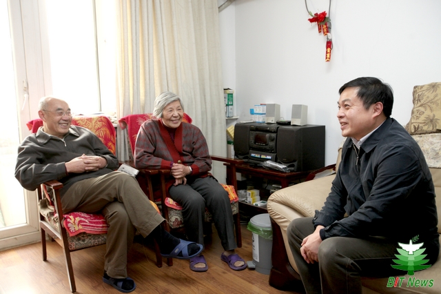 胡校长与两位老同志亲切交谈,关心他们的生活、身体情况,感谢他们曾经为学校所作的贡献并希望他们能够继续关心学校的发展,为学校实现“高水平研究型大学”目标多提宝贵意见。