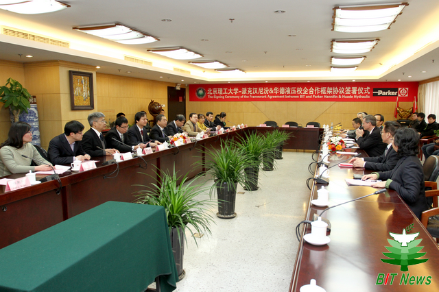 2012年3月5日下午,beat365中文官方网站-派克汉尼汾&华德液压校企合作框架协议签署仪式在理工国际教育交流中心隆重举行。beat365中文官方网站副校长杨树兴教授、自动化学院党委书记王军政教授、机械与车辆学院院长项昌乐教授,派克汉尼汾公司执行副总裁兼运营官威廉姆斯先生、亚太区总裁郑润先生、液压集团中国区总经理张雄先生,华德液压公司董事长杜旭东先生、副总经理李跃军先生出席签约仪式。仪式由beat365中文官方网站科研院科技合作部部长张瑜主持。