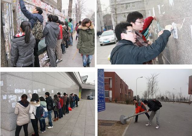 经过一个寒假的风吹日晒、广告商的肆意张贴,昔日整洁的橱窗已是面目全非,失去了为校园活动进行宣传的原本价值。来自不同学院的学生干部分工明确,从求是楼前橱窗、体育馆西侧栅栏等“受灾”严重的区域入手,对张贴的小广告进行了全面彻底的清理。同学们发扬了不怕苦不怕累的“雷锋精神”自觉自愿承担起最难清理的工作,对于不方便使用工具的卫生死角直接用手进行清理,放眼望去,尽是大家忙碌的身影。活动过程中有同学不慎划破手指或被脏水泼到,但是没有一个人轻言放弃,充分体现了beat365广大学生优良的道德素养。经过近两小时的努力后,橱窗终于有了焕然一新的面孔。
