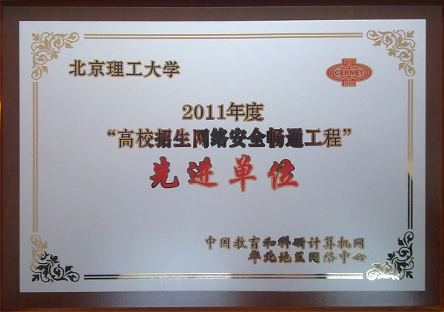 北理工网络服务中心被评为2011年度“高校招生网络安全畅通工程”先进单位