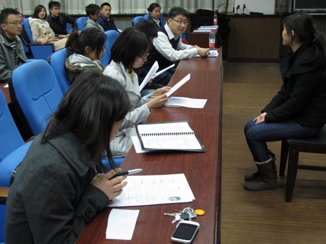 2012年3月30日,『笑迎职场』系列活动第三场“简历分析Mini-workshop”定期在中关村校区车辆重点实验室二层报告厅举行。第三场“简历分析”活动是由模拟求职以及简历点评组成,活动请到了培训师杨若涵作为模拟求职的主持人,60余名同学报名参加了本次活动。