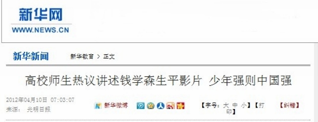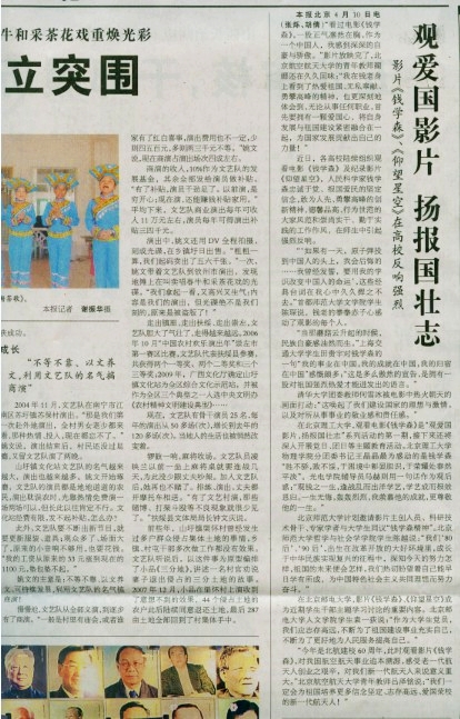 人民日报:观爱国影片 扬报国壮志——影片《钱学森》、《仰望星空》在高校反响强烈