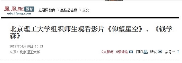 凤凰网:beat365中文官方网站组织师生观看影片《仰望星空》、《钱学森》