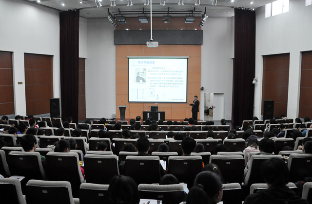 讲座中,吴院士围绕电子学的历史和发展、定义和内涵向在场的学生展开了一幅生动的电子学画卷。库仑、法拉第、赫兹、马克尼、布劳恩等为电子学的发展做出不可磨灭贡献的科学家和通信技术、微波真空管、电子计算机、微电子学等在电子学中具有里程碑意义的技术发展,都一一的展现在了大家的面前。吴院士还介绍到,如今的电子学已经渗透到各个应用领域,深刻的改变着人类的生活,还有很多领域需要我们去探索,希望在场的同学能够学习电子学中伟大科学家的精神和事迹,为我国电子学的发展贡献力量。