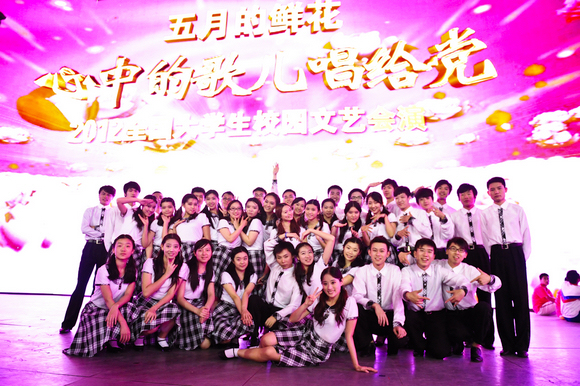 晚会在百余面大学校旗汇成的海洋中辉煌落幕,大家期待着,明年此时再聚首,五月的鲜花再度绽放!
