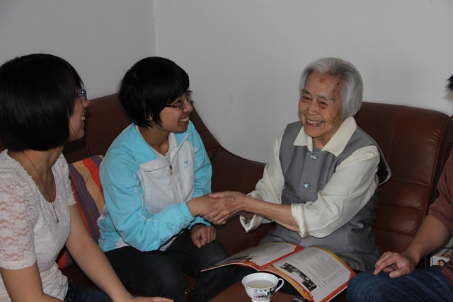 黎扬校友向大家介绍了自己的身体及生活情况,大家在得知老校友身体健康,生活幸福的同时,也希望老校友能够回母校看看。交谈过程中,她更多地回忆了当年延安自然科学院时期徐特立老院长对她的影响,动情之处不免有些哽咽。虽然黎扬校友已是93岁高龄,但是思维敏捷、表达自如。