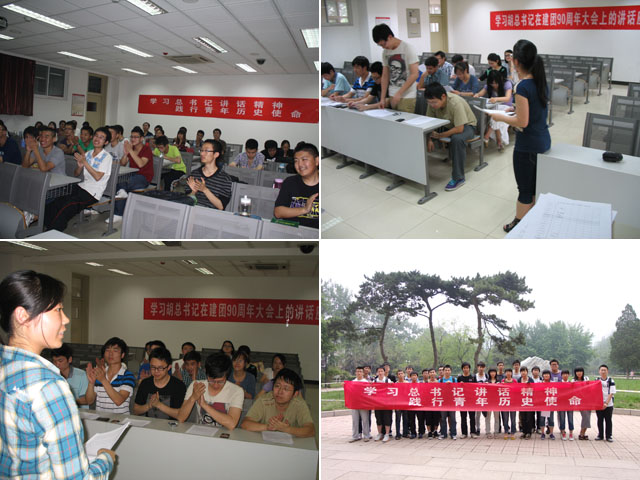 2012年5月7日—15日,光电学院分团委组织本科生、研究生团支部观看胡锦涛总书记在纪念中国共产主义青年团成立90周年大会上的讲话的视频,纷纷开展“学习总书记讲话精神,践行青年历史使命”主题学习活动,参与团员近200人。
