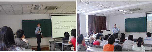 Dykshoorn教授以“How to be a better Teacher”为题,由一个个生动活泼的例子串联起来,用标准规范的语言为青年教师讲述了成为一个好教师应具备的条件和素质,并在讲授知识的同时很好地活跃了课堂气氛,使在座的青年教师颇受启发,收获良多。
