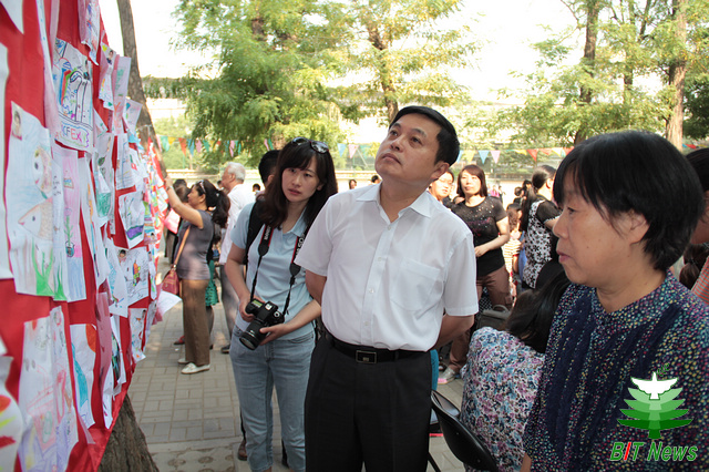 在学校办公室主任郝志强、理工附小校长柏淑芳的陪同下,胡海岩和赵显利参观了理工附小学生书画展、科技作品展,考察了校舍,出席了一年级少先队员入队仪式,并观看了丰富多彩的“红领巾心向党”庆六一文艺汇报会。