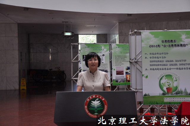 法学院环境法研究所所长罗丽教授首先致开幕词,她介绍了此次世界环境日的基本活动情况,以及环境法研究所长期坚持举办世界环境日公益宣传活动的意义。她指出,世界环境日公益活动是对我们课堂学习的检验,也是弥补课题学习不足的最佳途径之一。以世界环境日公益宣传活动为契机,结合学校实践育人的人才培养方针,通过宣传展、研究生学术论坛、专家讲座等多种方式,让学生们亲自动手分析问题与解决问题,在世界环境日公益宣传中引导全校师生热爱环境与保护环境,在学术论坛中展示自己学术研究风采与心得,在著名校外专家学者演讲中贴近学术前沿理论问题,通过这种方式延伸我们课堂教学,丰富课堂教学的内容,弥补课堂教学的不足,并决心继续努力,在学院领导的继续指导下,真正把世界环境日公益宣传活动办成我们热爱环境法学同学们自己的节日!