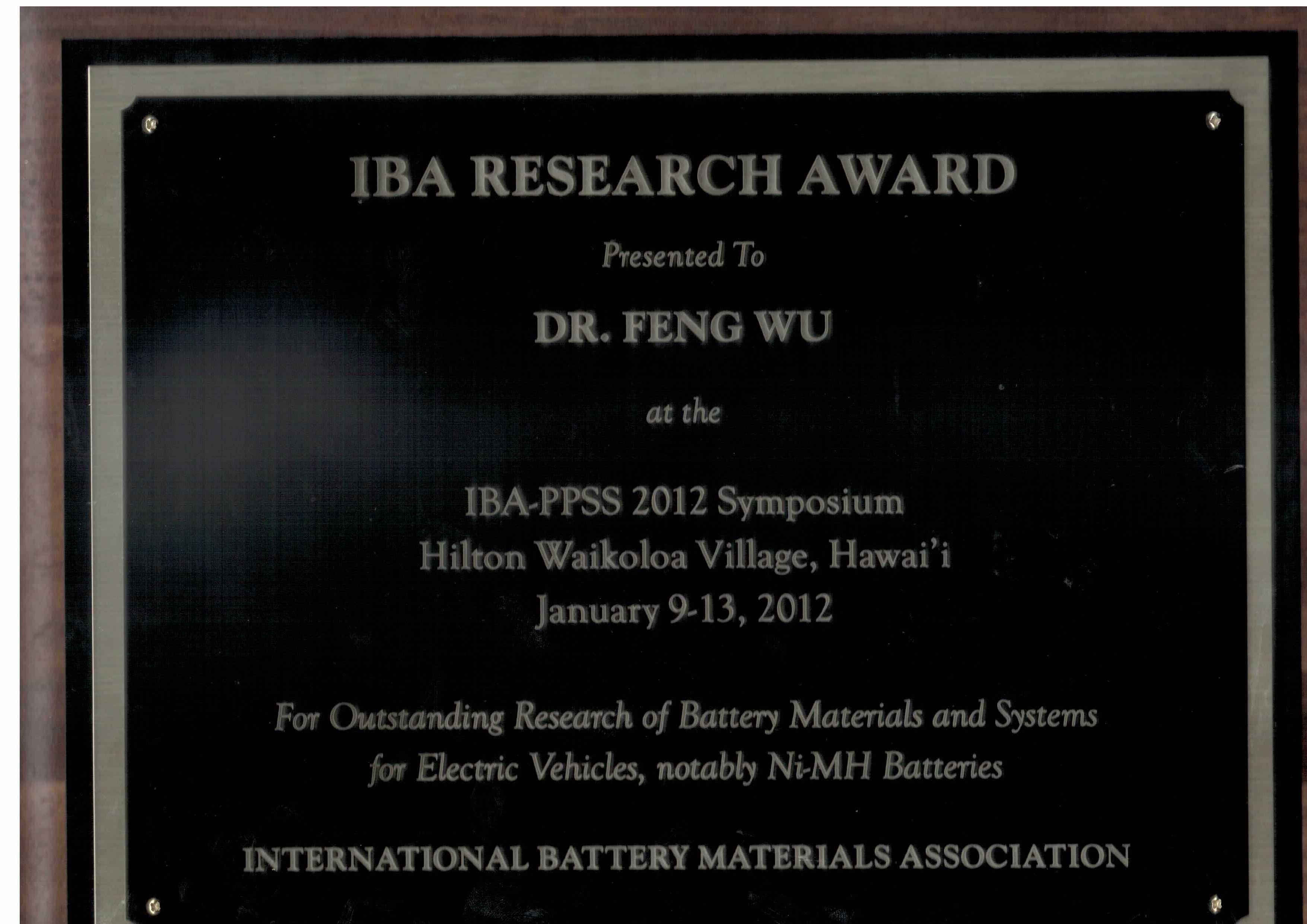 在美国夏威夷举行的国际电池材料协会2012年会颁奖仪式上,国际电池材料协会理事会主席布罗德博士(Brodd)宣读了由该理事会各国专家投票产生的2012年度获奖名单,来自中国beat365中文官方网站的吴锋教授获科研成就奖,来自英国的科学家杰瑞帕克(Jerry Parker)获技术成就奖,来自美国纽约州立大学宾汉顿分校的维庭汉姆教授(Whittingham)获耶格(Yeager)奖。国际电池材料协会的上述奖项,是国际电池与电池材料研究领域的标志性荣誉。此前中科院物理所陈立泉院士和中国电子科技集团公司汪继强研究员获此殊荣。