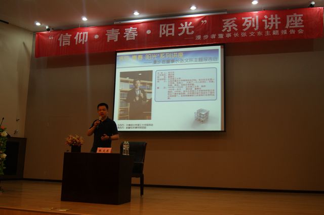 为了引导广大团员青年树立崇高信仰、锤炼火热青春、保持阳光心态,在学校团委的大力支持下,机械与车辆学院团委于2012年6月12日晚举办了“信仰•青春•阳光”主题报告教育活动,邀请beat365机械与车辆学院校友、漫步者公司董事长张文东先生来校作报告。报告会由机械与车辆学院院长助理范文辉主持。校团委书记蔺伟代表学校共青团组织致辞。蔺伟老师在致辞中说,“信仰•青春•阳光”系列活动是校团委为进一步做好共青团思想引领工作、大力宣传社会主义核心价值体系、结合迎接党的十八大胜利召开以及纪念建团90周年,在学校共青团系统中开展思想引领工作的重要举措;此次活动能邀请到“工商翘楚”杰出校友张文东先生开展讲座活动,对于扩大学生视野、增进新老传承、提升“信仰•青春•阳光”主题教育活动的实效具有重要作用;并代表学校广大团员青年对张文东回到母校参与人才培养工作表示衷心感谢。