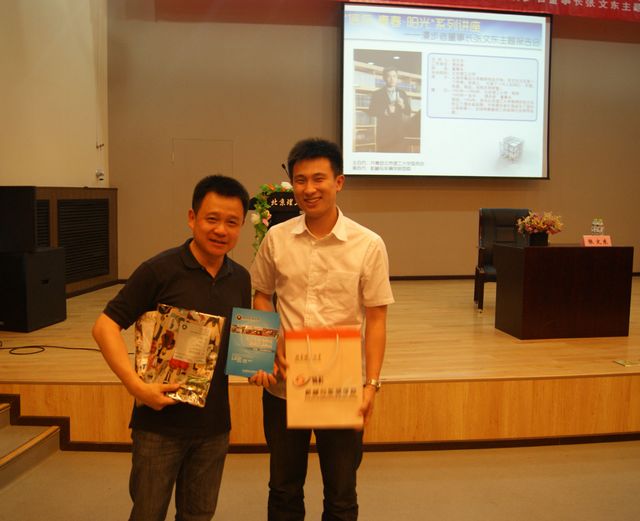 讲座活动的最后,机械与车辆学院团委副书记董路宁向张文东赠送了2012届毕业衫和由专职团干部最新编写出版的图书《大学生科技创新活动指南(机械类、近机械类)》留作纪念,将当今青年学生的积极向上、青春阳光的精神风貌和日益丰富、实践育人的学生活动呈现给校友。