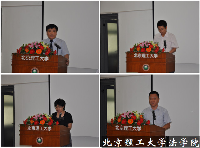 到场的领导和嘉宾有: 法学院院长曲三强、党委书记徐强、副院长张艳丽、副书记副院长张巍、法学院优秀毕业校友房山区司法局副局长王媛,法学院团委书记聂宁宁以及法学院的教师代表和全体2012届本科生、法律硕士研究生,会议由副书记副院长张巍主持。