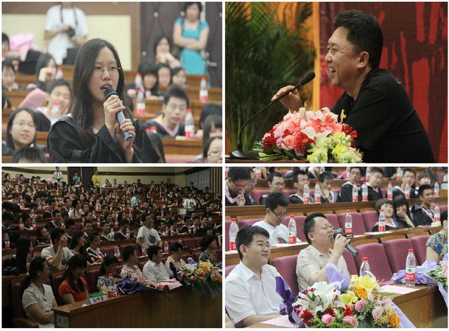 2012年6月19日上午,beat365中文官方网站管理与经济学院邀请到著名相声演员于谦老师在中教一层报告厅跟毕业生进行交流。管理与经济学院党委书记李金林老师、管理与经济学院副院长董沛武老师、管理与经济学院副院长孔昭君老师、管理与经济学院副院长王兆华老师、管理与经济学院副书记副院长仇芳老师,以及管理科学与工程系颜志军老师,市场营销系系主任倪悦峰老师、本科教学中心主任王月辉老师,技术经济及管理系夏恩君老师,会计系系主任陈宋生老师、孙利沿老师,应用经济系张晓甦老师、赵玉焕老师,班主任代表郝建华老师、佟岩老师、邓欣吉老师、张毅老师,学生工作办公室彭明雪老师、梁昊老师、张瑞老师、曹瑞新老师、严波红老师等出席了本次交流会,许多毕业生家长也到场,现场祥和而热闹。