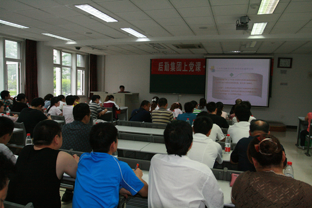 2012年6月28日下午,后勤集团在研究生教学楼104室组织开展“上党课,忆党史,庆七一”主题教育活动,后勤集团党委副书记姜金凤出席了主题党课教育活动并担任此次党课的主讲,后勤集团入党积极分子和团员共计50余人参加此次主题教育培训,培训会由后勤集团办公室副主任兼团委书记王海涛主持。