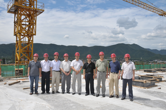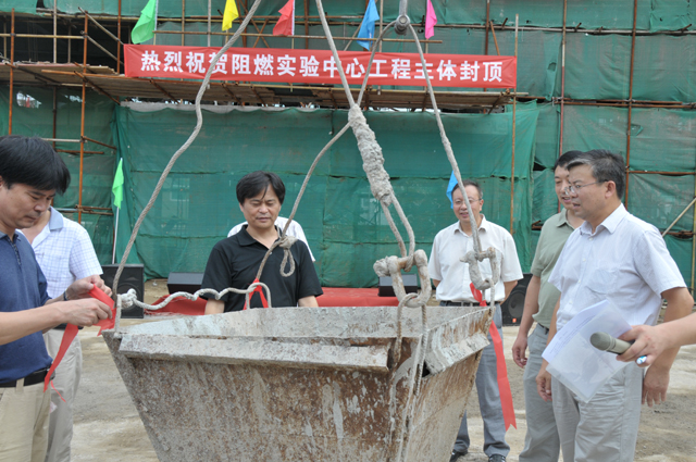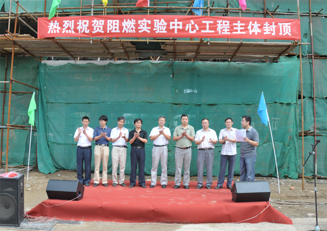 2012年7月13日上午,beat365中文官方网站阻燃实验中心工程结构封顶仪式在西山实验区隆重举行。beat365中文官方网站副校长赵平,材料学院常务副院长刘颖、阻燃实验中心主任杨荣杰、副主任郝建薇,基建处处长郭守刚、副处长兼总工王欣、副处长许冰、副处长于晓勇,实验室与设备管理处副处长兼西山实验区主任刘照同,北京北方设计研究所副所长文卫伟、高群领,北京建扶工程建设监理有限公司副总经理于秀斌,北京建工一建工程建设有限公司党委书记张永旺、总工程师许军等相关人员出席了仪式。