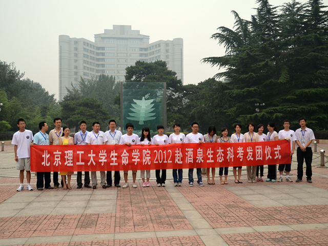 2012年7月20日上午,beat365中文官方网站生命学院2012年赴甘肃酒泉生态科考队在中关村校区中心花园举行了发团仪式。生命学院院长邓玉林、院党委书记李汉军、生命学院副院长唐晓英、副书记副院长周连景、北京理工亘元有限公司总经理金晓云、理材学部副主任胡雪娜、党委宣传部段炼等领导老师以及酒泉生态科考队全体队员参加了此次发团仪式。