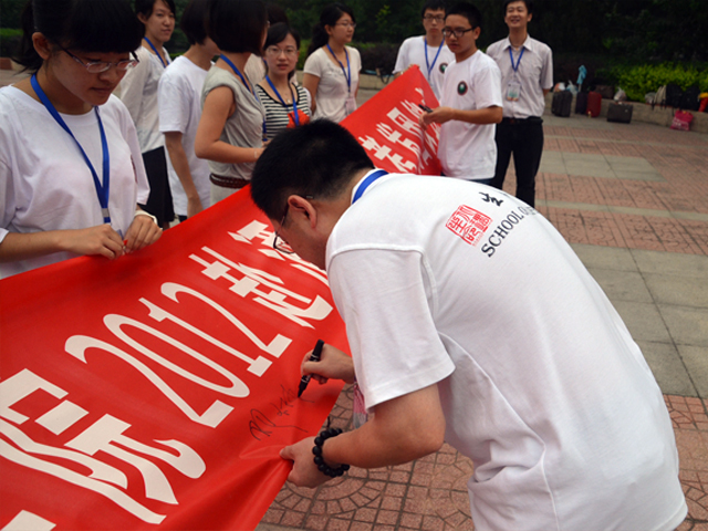 活动结束后,全体科考队员和出席的领导老师在条幅上签名,并在队旗和条幅前合影。也标志着2012年生命学院赴甘肃酒泉生态科考活动正式启动。我们将在后续一周的科考活动中努力完成考察课题并取得丰硕成果。