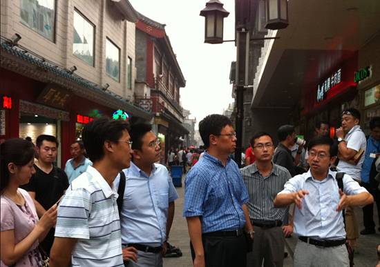 大栅栏街道工委副书记桑硼飞带领校友在大栅栏地区考察调研了古都风貌的保护、传统商业的开发、梨园京剧的创立、中华文明的传承,参观了全国首家中华老字号集聚区大栅栏、中国文房四宝文化第一街琉璃厂。校友们也结合自身工作情况展开了深入的交流和探讨。