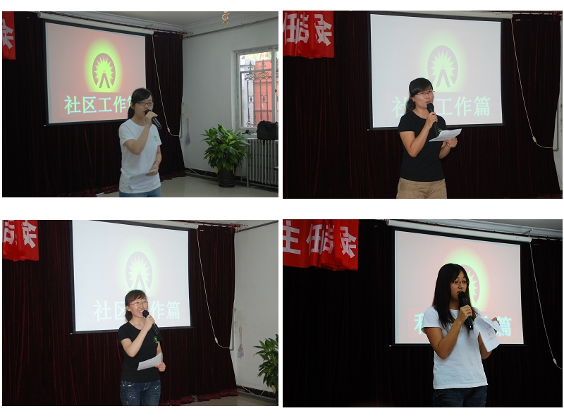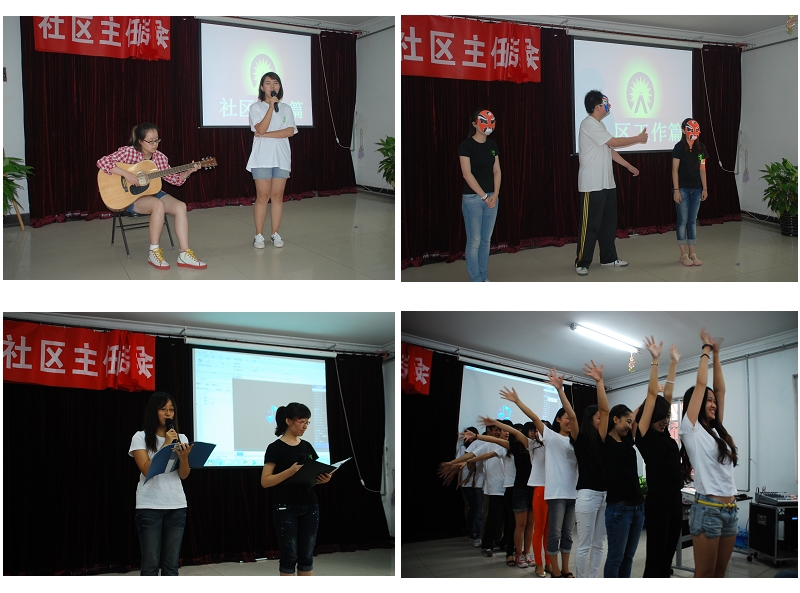 开场篇---相约天桥。伴随着实践团介绍视频的播放,结业报告会正式开始。天桥街道办事处团工委书记首先进行总结发言,对实践团成员在此期间做出的努力与付出予以认可和感谢,并表达了自己对实践成员的美好祝福。在社区工作篇和科室工作篇中,实践团成员在工作总结视频后演绎了精彩纷呈的节目。节目《在路上》以短剧的形式幽默风趣的表现了实践成员的工作生活片段;诗歌朗诵《别了,我的天桥》在描绘5周的实践工作经历的同时,表达了全体实践团成员的对天桥社区的离别之情;二人组合吉他弹唱用动听的歌喉、巧妙的编排让在场观众充分领略到实践团成员工作以外的才艺。总结篇---爱在天桥篇中,全体实践团成员以精心编排的集体舞蹈《舞动天桥》表达了对天桥的感激之情与无限美好祝福。新颖的构思,精心的编排,外加实践团成员曼妙的舞姿和生动的表情,打动了在场的每一位观众,博得阵阵掌声。