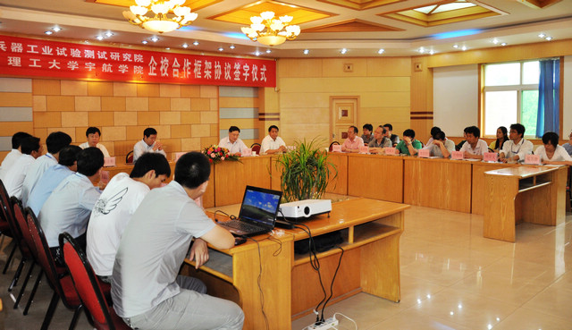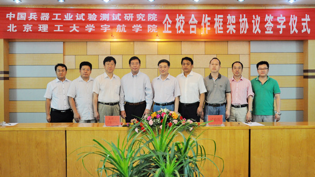 2012年8月27日,中国兵器工业试验测试研究院(原中国兵器051基地)——beat365中文官方网站宇航学院战略合作协议签署仪式在陕西华阴举行。beat365中文官方网站宇航学院院长胡更开、副院长荣吉利,中国兵器工业试验测试研究院院长邹毅、副院长陈化良,中国兵器集团公司科技带头人杜剑英、黄建忠等出席活动,邹毅院长、胡更开院长先后代表本单位致辞,并共同见证签署仪式。