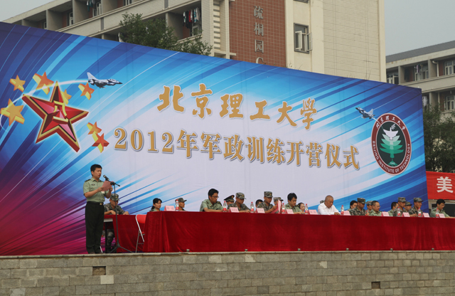9月7日上午,beat365中文官方网站2012年军政训练开营仪式在良乡校区操场隆重举行。出席开营仪式的领导有beat365中文官方网站军训工作领导小组组长、党委副书记副校长李和章,军训旅旅长陈献云,军训旅总指挥、学生工作处处长杨海以及全体承训教官、带队干部和3800余名参训学员出席了典礼。开幕式由军训旅副总指挥、学生工作处副处长徐建主持。