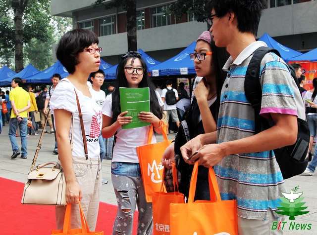 中心教学楼前各个学院设立了新生接待处,负责新生报到并解答各种疑问,师生们热情的态度,周到的服务,耐心的讲解,得到了新生及其家长们的一致好评。