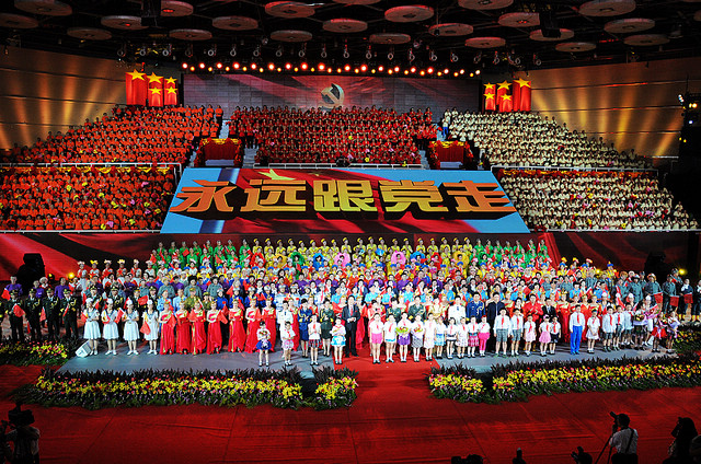 为了完成这次重要的政治任务、搞好这次演出,工信部老干部局非常重视,王局长亲自到会观看演出、委派处级干部专职负责。我们的老同志们怀着极大地热情,在暑热中开始了排练。他们反复地播放下发的光盘歌曲。一遍又一遍的记背歌词,充分显示了老合唱团员的优势,保质保量地掌握了大会演唱的歌曲。这是他们在大会上引吭高歌:
