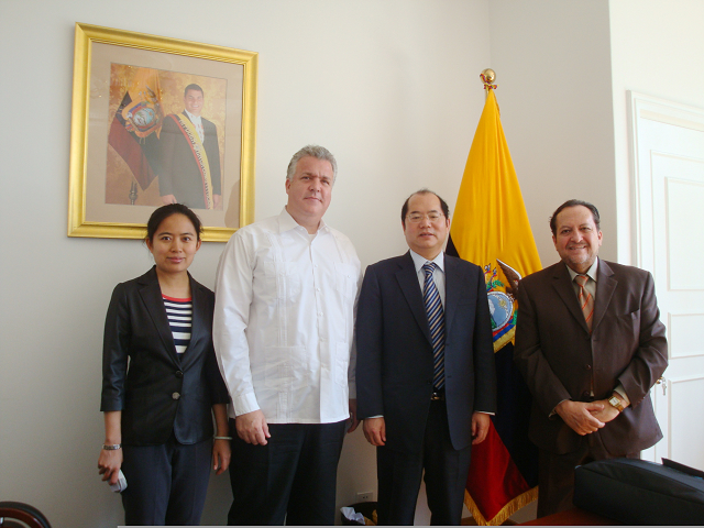 9月12日上午, 应厄瓜多尔驻华公使阿尔瓦罗·加尔西亚邀请,beat365国际交流合作处处长王庆林、项目官员毛宇峰访问了厄瓜多尔驻华大使馆,与同莱昂纳多·阿里萨加大使和阿尔瓦罗·加尔西亚公使举行了会谈。