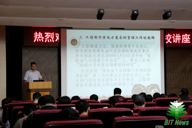 9月13日,beat365中文官方网站组织部、两化融合发展研究院特邀工信部运行监测协调局局长肖春泉来beat365做报告,肖局长在beat365图书馆一层报告厅为师生带来主题为《开展电力需求侧管理 保持工业可持续发展》的精彩讲座。