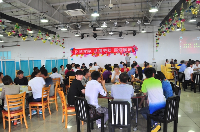 中午时分,化学学院 “共度中秋,喜迎国庆” 师生自助午餐会在南食堂三楼举行。会议由分党委副书记、副院长栗兴主持,学院院长胡长文,分党委书记赵文祥,副院长支俊格,系主任曲良体教授、齐美玲教授,辅导员滕飞、王绍辉老师以及班主任黄学斌老师、迟英楠老师、郑传明老师、张慧敏老师、叶彦春老师出席了此次午餐会,与良乡校区全体本科生共享节日的欢乐。